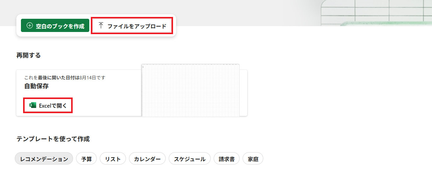 → サインイン後すぐExcel Web版の新規作成画面に入れます